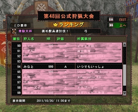 笛と弓で今回は100位以内をゲットしたよ。