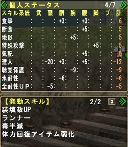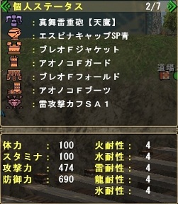 雷属性攻撃強化【大】と、砲術神をメインに、