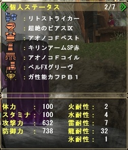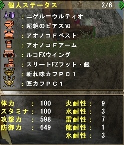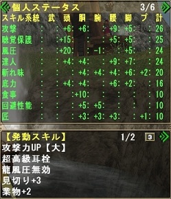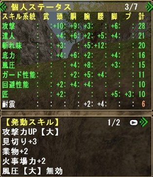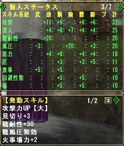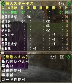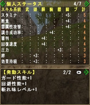 これはアオノコに麻痺剣Gと剛力が余計に入ってるから本来はいらない。