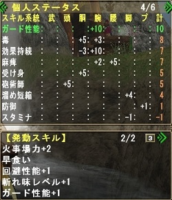 回避性能1、ガード性能1で基本ランススキルもおk。