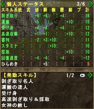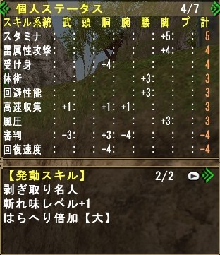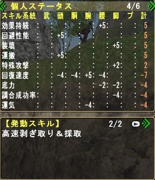 どちらも、剥ぎ取り装備でいくかいかないかで大きく効率が変わると思うので、