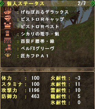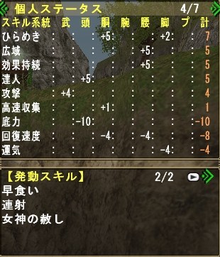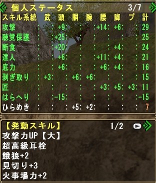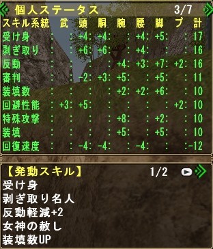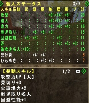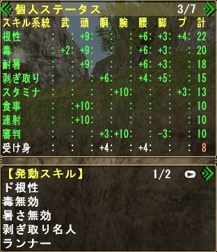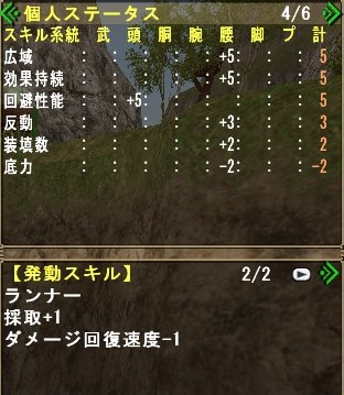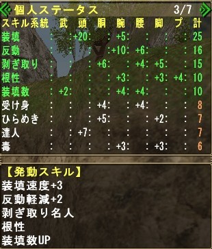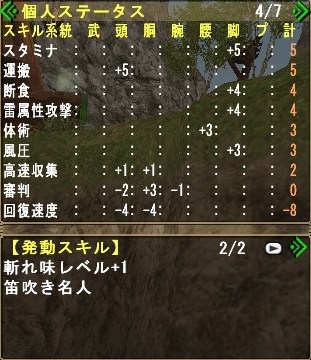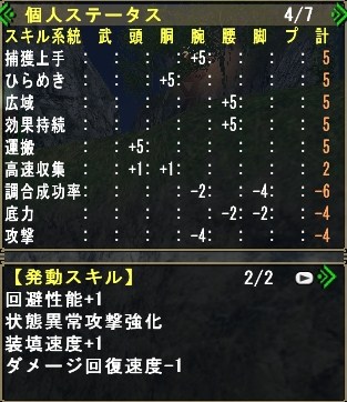 主にグレンのしっぽ切り、キリン(HC)の睡眠溜め4を活用させる為の装備れす。