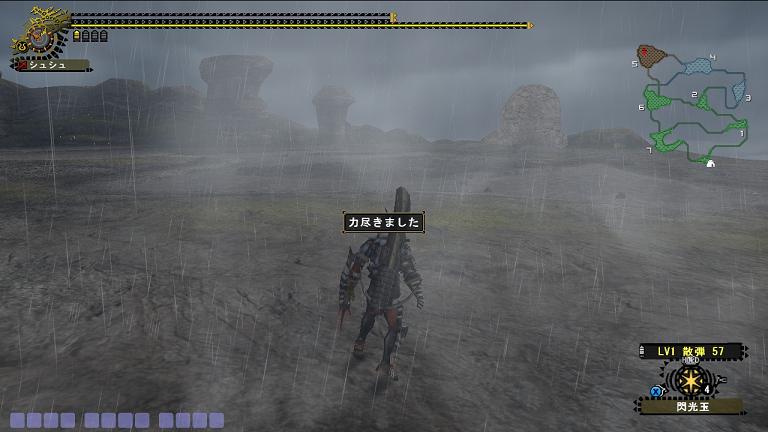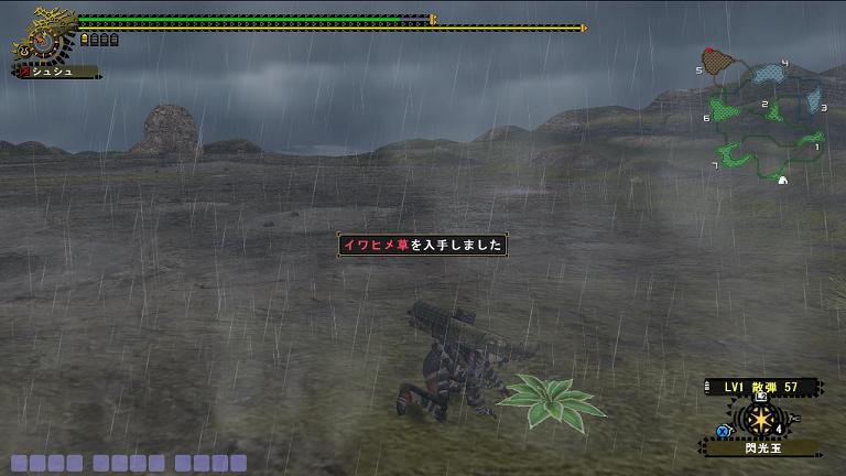 エリア⑤採取中に天候が変わって、ゲリラ豪雨が発生しますぞ。