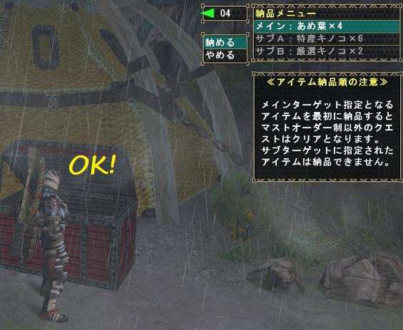 こっちの『あめ葉』4つ納品のクエのこちらをチョイス。