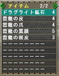 下位デュラの1個、上位ティガ2個、変ザザミが2個、と