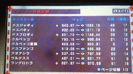 モンスター狩猟数。