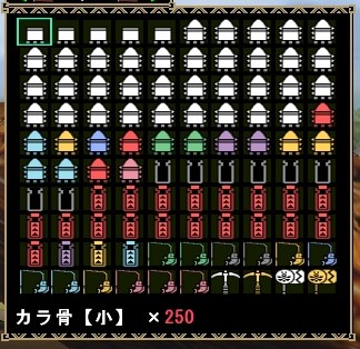 採取や下位クエをソロで行った時に支給品ボックスから回収した弾やビンがいぱーいあります。