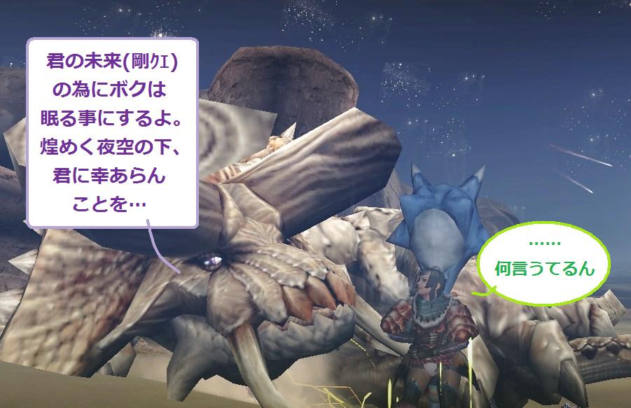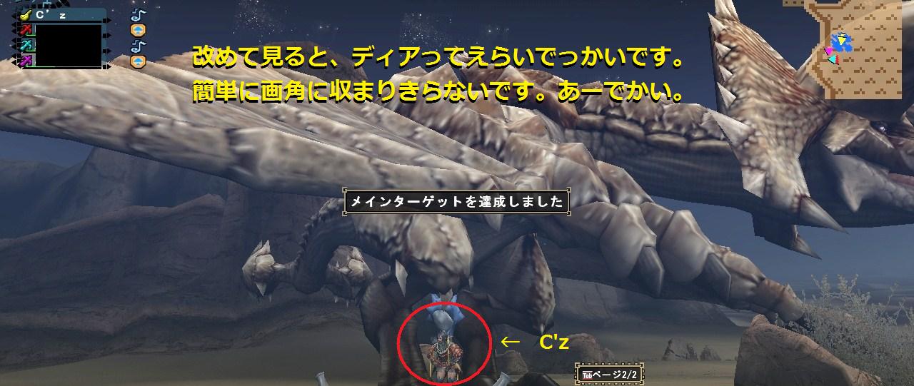 2回目スタン取ったら後は適当に背中を殴りに行ったりして時間つぶして3回目の麻痺が切れてもがきだしてから麻酔玉投げてシビレ罠置いてその間にディアが飛び出して着地後にもっかい麻酔玉投げたらテッキンコンクリート、そう、ミッションコンプリートです。
