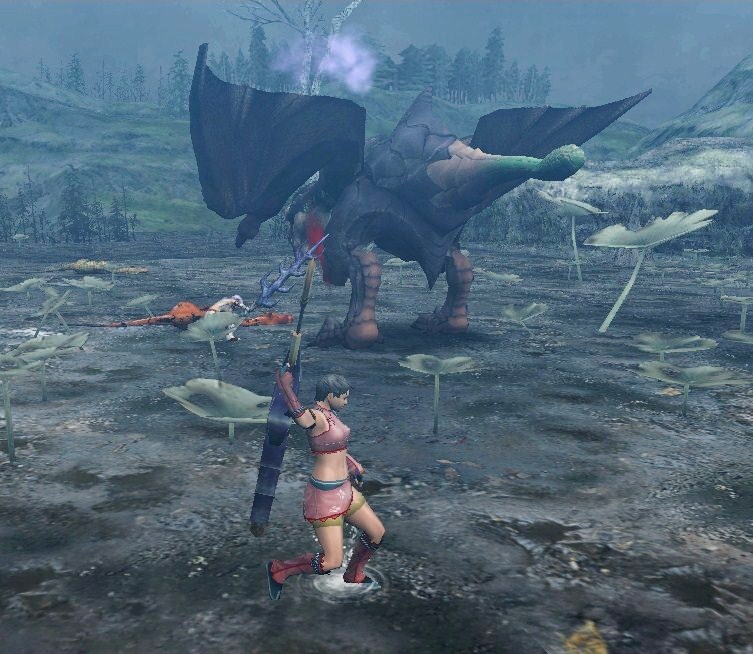 団めんばーと裸体をうねうねとモンスターに見せ付けつつハンティング。