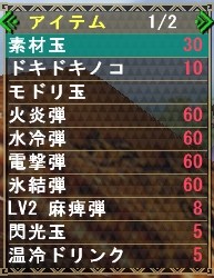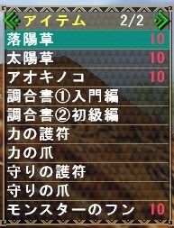 3種調合素材とアイテム渡し用に『フン』も携帯。