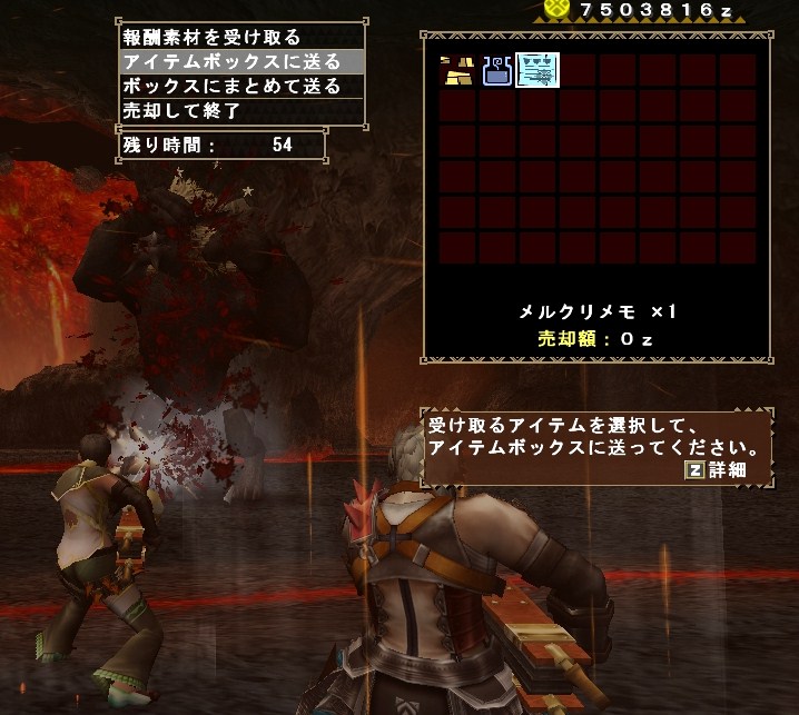 フルフル君は火炎弾速射2発でだいたい討伐できますね。