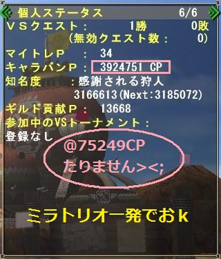 でもこれはミラトリオなら余裕で1回でもらえる(大体1回で20万CPくらい)ので、